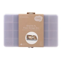 Providing a fun and engaging experience, keep hunger at bay with the Melii Luxe Snackle Box XL. Designed with convenience in mind, the tackle box inspired Snackle Box XL neatly organises your favourite snacks in up to 24 easily accessible individual compartments. Featuring 4 removable dividers that allows for versatile storage options, accomodating both small and large snacks, the Snackle Box XL with its sturdy food safe construction and secure snap-lock lid keeps snacks fresh and intact. Ideal for travel, lunches, family outings, and road trips, add an element of excitement to snack time with the Snackle Box XL; the ultimate on-the-go snack container!