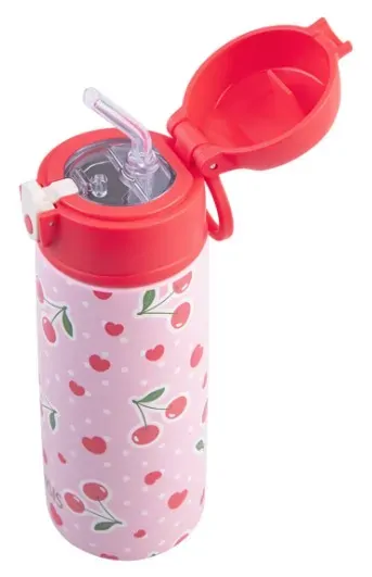 Designed for convenience, it comes with a flip-top lid and a removable silicone sipper straw, making sipping easy and cleaning a breeze. Built with double wall vacuum insulation technology, this bottle keeps drinks cold for up to 12 hours, ensuring refreshment throughout the day. Plus, the insulation prevents condensation, so no more soggy backpacks! Crafted from premium 18/8 stainless steel, its rust-resistant, odour-free, and incredibly durable - ready to handle anything kids throw at it.