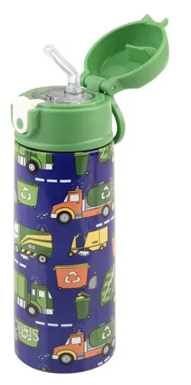 OASIS DOUBLE WALL INSULATED SIPPER STRAW KID'S DRINK BOTTLE - 550ML GARBAGE TRUCKS