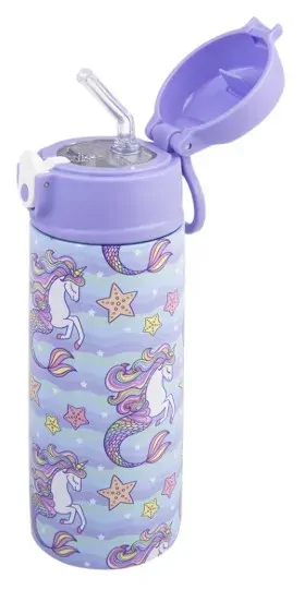 Oasis Double Wall Insulated Sipper Straw Kid's Drink Bottle - 550ml Mermaid Unicorns