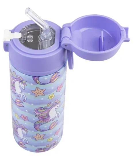 OASIS DOUBLE WALL INSULATED SIPPER STRAW KID'S DRINK BOTTLE - 550ML MERMAID UNICORNS