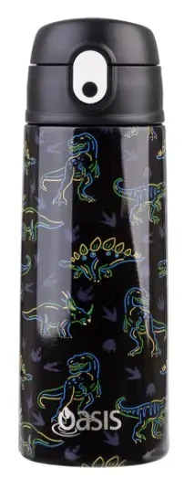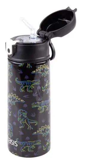 OASIS DOUBLE WALL INSULATED SIPPER STRAW KID'S DRINK BOTTLE - 550ML NEON DINOSAURS