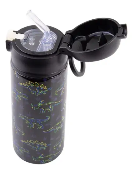 Designed for convenience, it comes with a flip-top lid and a removable silicone sipper straw, making sipping easy and cleaning a breeze. Built with double wall vacuum insulation technology, this bottle keeps drinks cold for up to 12 hours, ensuring refreshment throughout the day. Plus, the insulation prevents condensation, so no more soggy backpacks! Crafted from premium 18/8 stainless steel, its rust-resistant, odour-free, and incredibly durable - ready to handle anything kids throw at it.