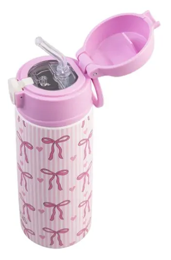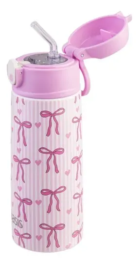 Oasis Double Wall Insulated Sipper Straw Kid's Drink Bottle - 550ml Bows & Hearts