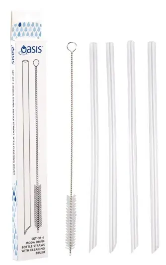 Suitable for all Oasis Moda Drink Bottles, this set of 4 replacement clear silicone Moda straws, offer better hygiene, and includes a handy cleaning brush.
