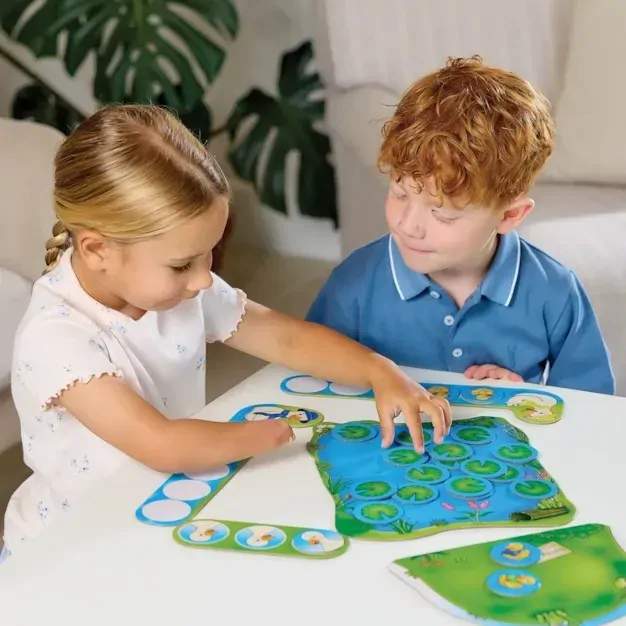 Bring the classic nursery rhyme Five Little Ducks to life with this fun and educational counting game! Designed especially for children aged 3+, this colourful board game helps little ones learn to count, recognise colours, and develop their observation skills through imaginative play. Be the first to collect all five of your coloured ducklings and call them home! Players take turns turning over lily pad cards from the pond board. If it's a duckling, place it on the hill, but if it's a mother duck, call your ducklings back by saying "quack, quack, quack, quack"! The first player to collect all their ducklings wins! Five Little Ducks combines learning with laughter. The simple gameplay makes it ideal for preschoolers, helping to build confidence and encourage turn-taking. When the game is finished, children can join in singing "Five Little Ducks went out one day, over the hills and far away..." making playtime even more memorable!
