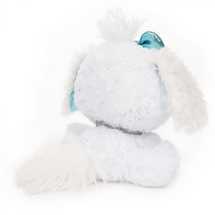BLING IT ON! Bianca Blings is always ready for a mid-day, Mid-town brunch with the girls in Manhattan, where she struts her sparkly self like she owns the street. This precocious pup loves a good gossip sesh and wags her fluffy tail when the goss gets juicy! Her dainty white fur is flecked all over with her favourite diamond-inspired sparkles, and because she can never get enough bling, her sparkling teal eyes match her stain bow, glittering silver collar, and super fluffy ears. Start your P*Lushes Pets Collection today with this fashionable Bianca Blings.