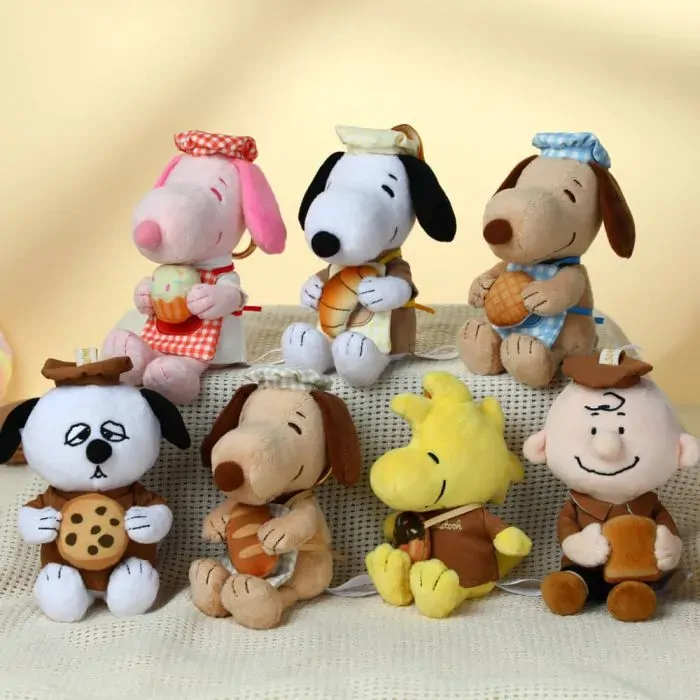 -Features Peanuts characters in a cute bakery theme