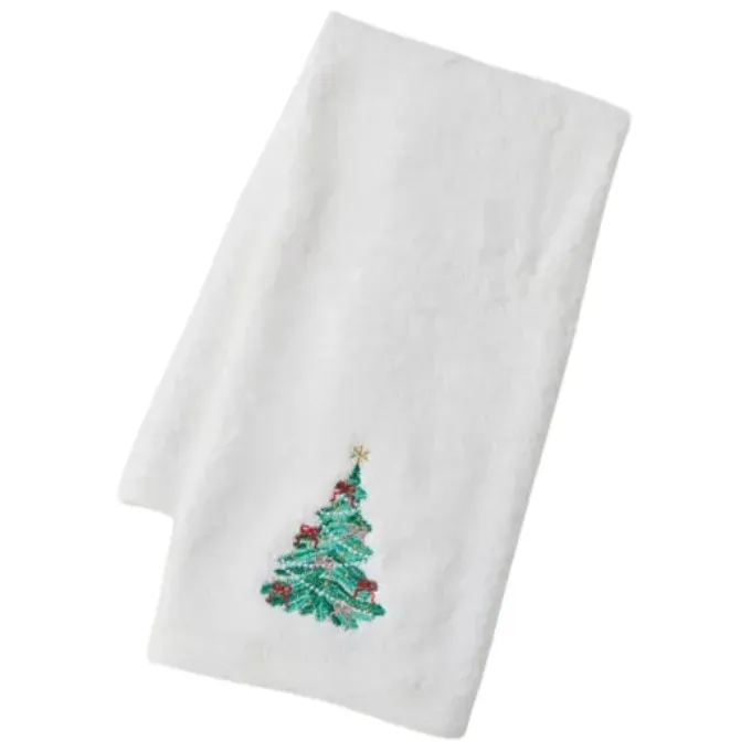 The Christmas Cheer Hand Towel blends classic motifs with whimsical detail to create a festive bathroom accent. Made from soft cotton, the towel is embroidered with a seasonal scene - a decorated Christmas tree topped with a star. A charming addition to gift bundles or holiday homeware ranges, it offers a polished seasonal touch across a variety of display settings.