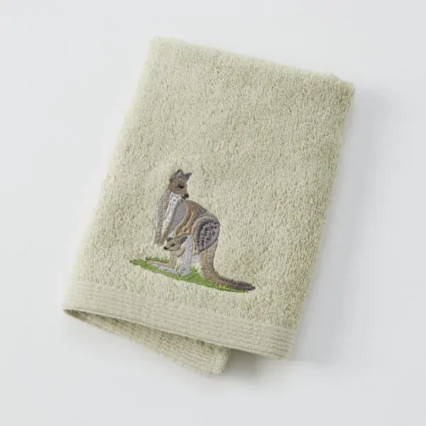 The gorgeous Kangaroo Face Washer is made from 100% cotton, finished with an embroidered motif, and designed to absorb water to leave skin feeling refreshed and dry. Luxuriously soft and adorned with timeless artistry, this face washer brings a touch of elegance to every cleanse. Indulge in beauty and comfort.