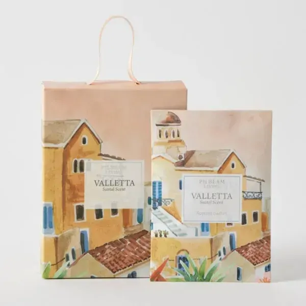 These beautifully designed mini scented sachets can be used to gently fragrance wardrobes, drawers, bathrooms, the car, or office. Simply place them anywhere to release the warm, woody aroma of Santal, with notes of amber and sweet musk. Featuring soft watercolour artwork inspired by Mediterranean architecture and summer landscapes, they bring a relaxed and elegant touch to any space.