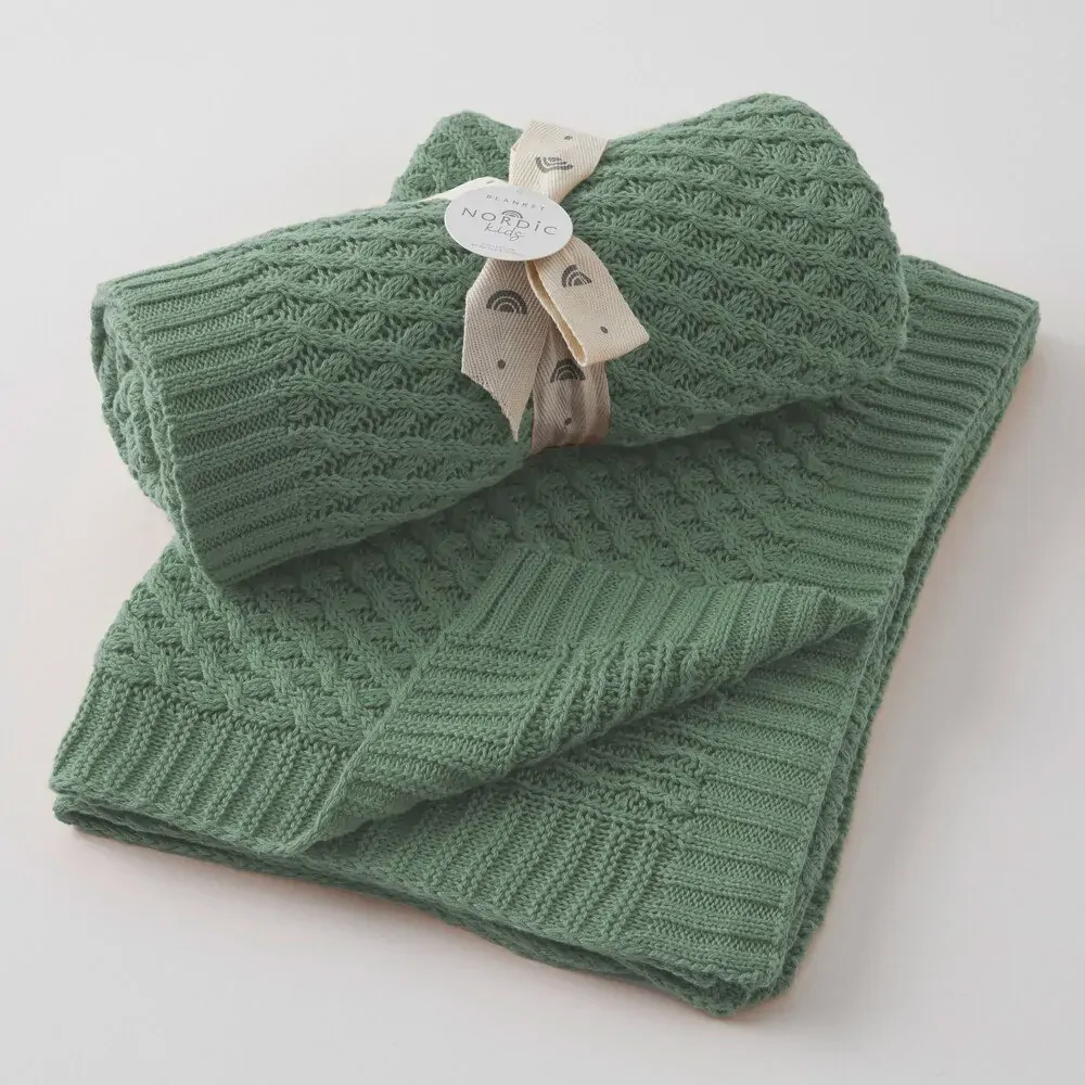 PILBEAM NORDIC KIDS - FOREST GREEN BASKET WEAVE KNIT BLANKET