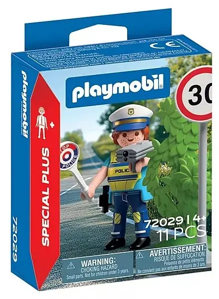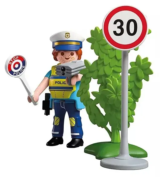 With sharp eyes and quick reactions, the PLAYMOBIL officer keeps the roads safe and orderly.