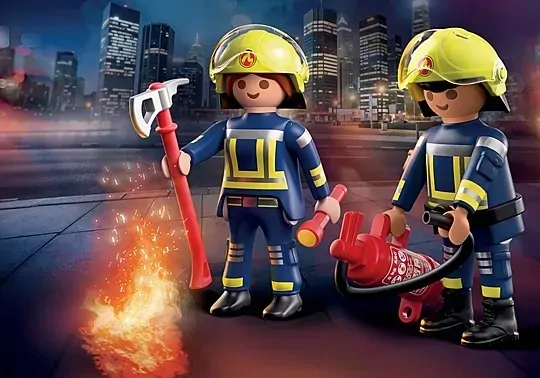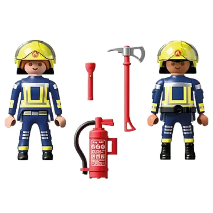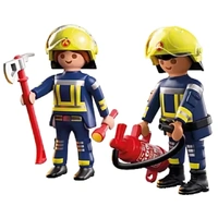 Emergency call! The PLAYMOBIL DuoPack Fire Brigade is ready for action. Whether its a blazing building or a small rescue mission, these two fearless firefighters are always prepared. Equipped with a fire axe, flashlight, and extinguisher, they can handle any emergency. Their helmets feature flip-up visors for quick gear swaps and better visibility. Kids can dive into imaginative firefighting adventures and create their own heroic stories. PLAYMOBIL DuoPacks bring double the fun in a compact set perfect for creative play or as an exciting addition to any PLAYMOBIL collection!