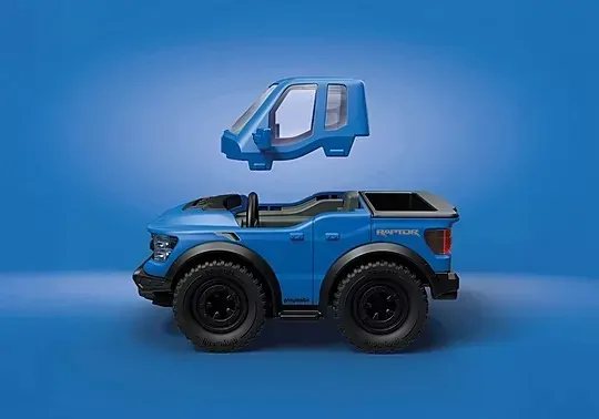 Get ready to blaze your own trail with the rugged PLAYMOBIL X Ford F-150 Raptor! Built for bold adventures, this powerhouse truck roars onto the scene with chunky tires, fierce detailing, and a driver figure ready for action. The roof opens so you can easily place your figure behind the wheel then its time to hit the road or the wild terrain! Whether youre off-roading in the living room or parking it on your collectors shelf, this PLAYMOBIL set delivers high-octane fun for truck lovers of all ages.