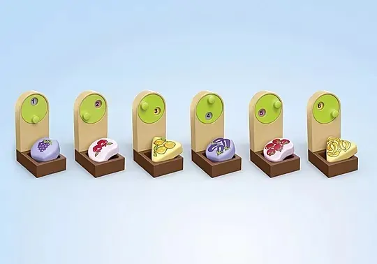 It's market day! Which vendor has the crispiest vegetables and the sweetest fruits? With this colourful set, your child can gain their first shopping experiences. Who delivers the groceries and how are they weighed? With the Organic Market Stall, your child can playfully recreate the shopping process and, in the process, develop a sense for shapes, colours, and quantities. Does your child enjoy shopping? Then this set is perfect for you. At the Organic Market Stand, there's plenty for little market visitors to explore. The forklift delivers fruits and vegetables. Quickly, the crates are unloaded, and the sales begin. How many bananas are printed on the shape block? Who can turn the scale to the correct number? And how many fruits fit in the shopping cart? Who can sort all the fruits and vegetables into the right crate? After the successful shopping trip, there's still one question left: Which fruit or vegetable tastes best?