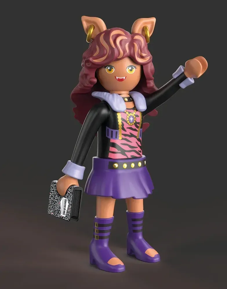 Clawdeen is ready to slay the day in true Monster High style! This detailed PLAYMOBIL teen figure features modular parts for mixing and matching her look, plus her book adds extra storytelling fun. Whether she's strutting the halls or scribbling down secrets, Clawdeen inspires howls of creativity. With signature PLAYMOBIL fun and a flair for fashion, shes perfect for any monster-loving fan!