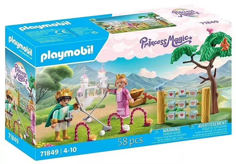 In the garden of the princess's castle, the royal children gather to play. Here, they can play real croquet or try tic-tac-toe at the dice fence. The cute squirrels and birds watch the colorful activities with amusement. Who will win the young princess or the young prince?