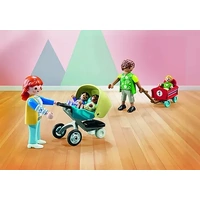 In the playgroup, toddlers are encouraged through playful activities. Ready for the next outing, there's a double stroller and a wagon. Complete with changing table, baby crib, slide, wagon, double stroller, and many more accessories. PLAYMOBIL Promo Packs offer extra-large fun at a small price! This adorable PLAYMOBIL playset includes five PLAYMOBIL figures, a play tower with a slide, various toys, a baby crib, and many other charming extras for endless creative role-playing adventures.