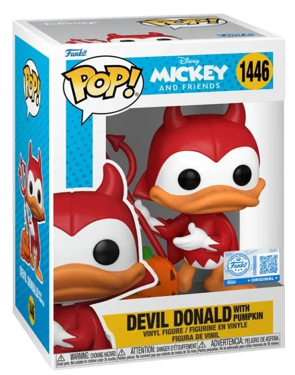Enjoy a night of trick-or-treating and jack-o-lantern carving alongside this exclusive POP! Devil Donald with Pumpkin!