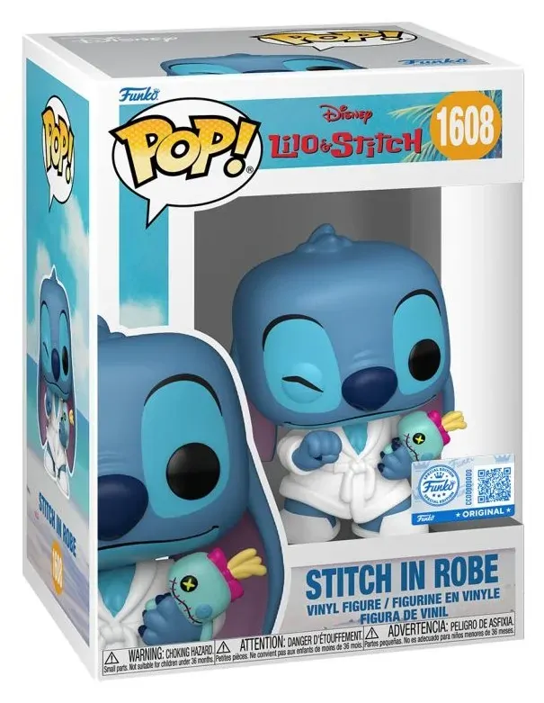 This Pop! Vinyl figure captures Stitch looking extra cosy in his robe with plushie in hand, blending his playful personality with a touch of relaxation