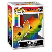 A Pride rainbow variant of Stitch, seated, from the hit Disney movie.