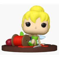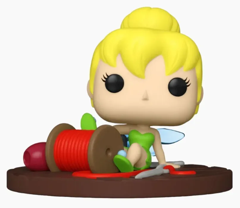The fairy Tinker Bell with a needle and spool from a scene in the animated Disney movie Peter Pan.