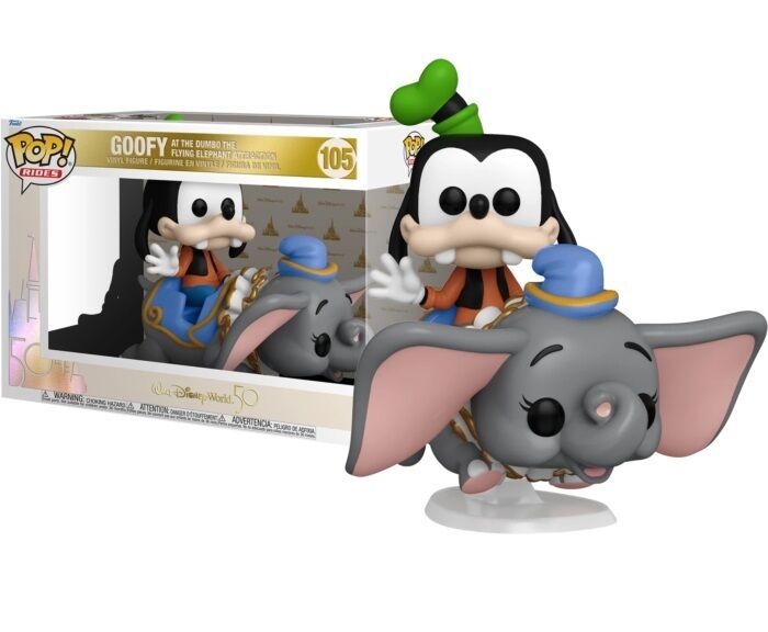 A 50th Anniversary Pop! of Goofy on the flying Dumbo ride at Disneyland.