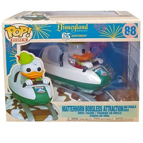 A 65th Anniversary edition of Donald Duck riding in a Matterhorn bobsled.