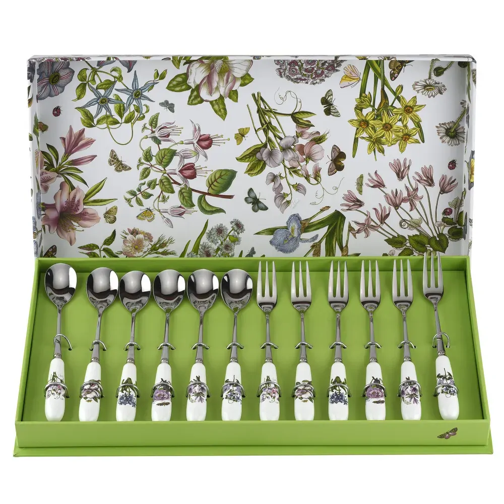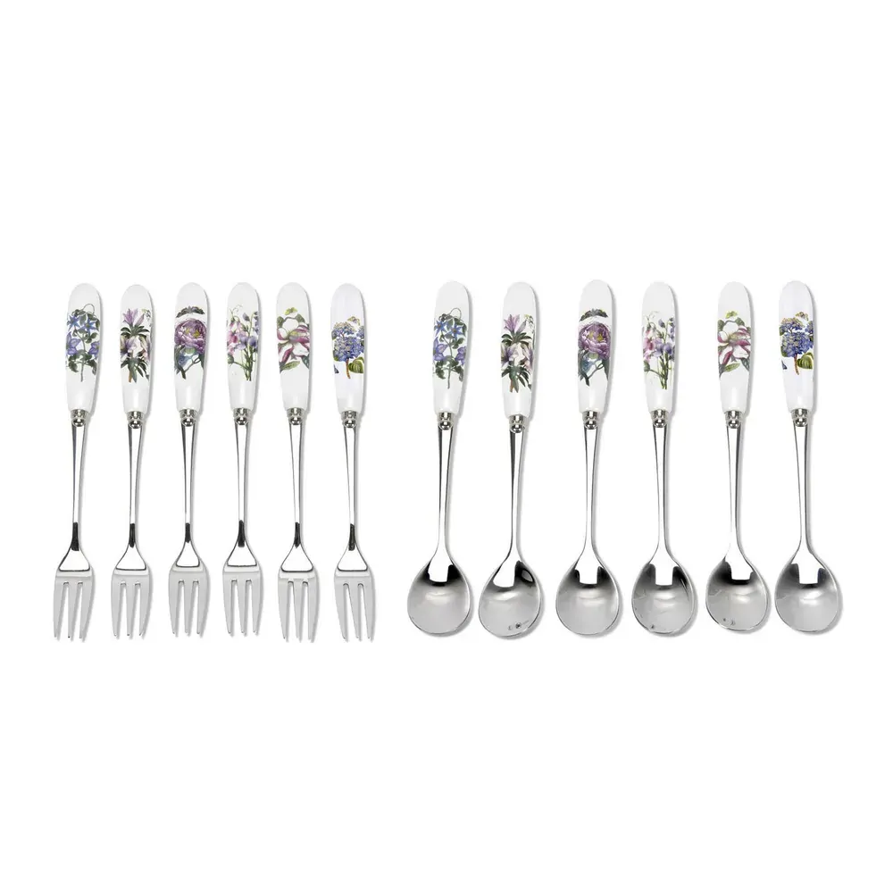 PORTMEIRION BOTANIC GARDEN - TEASPOONS & PASTRY FORKS - MIXED MOTIFS 15.5CM (SET OF 12)