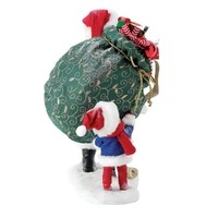 Every load is lighter with help. This happy helper is just what Santa needed to get this heavy load to it's destination.