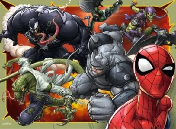 This set of 4 colourful, action-packed, dynamic images show Spider-man, Spider-girl, Kid Arachnid and Spider-Gwen fighting off the evil villains Rhino, Green Goblin, Venom, Lizard and Vulture. In a fight of superhuman powers, who will be the winner of the battle?