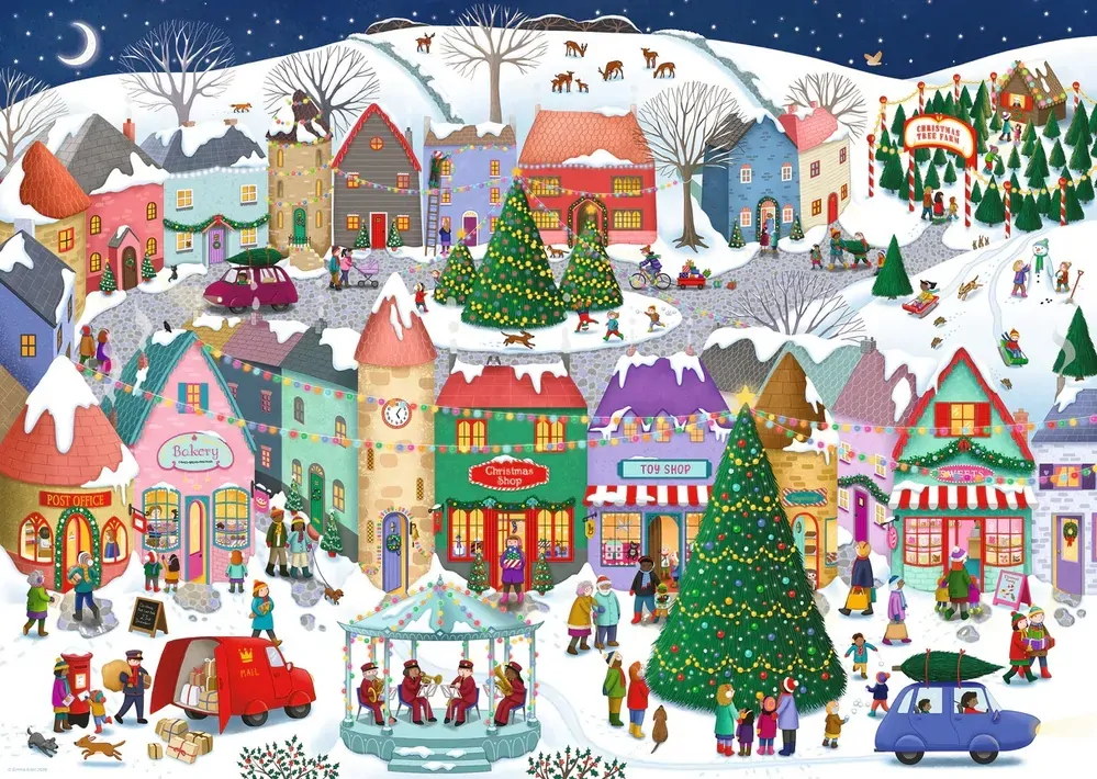 Looking for a festive puzzle? The Christmas Town jigsaw from Ravensburger offers a warm scene - despite the snow covering the town - of a colourful village all lit up and decorated for the holiday season. Villagers walk along the cobblestone streets with their dogs and prams, post officers pack away Christmas gifts in their mail trucks, families pause to admire the giant Christmas tree and the smell of fresh pine wafts from the Christmas Tree Farm.