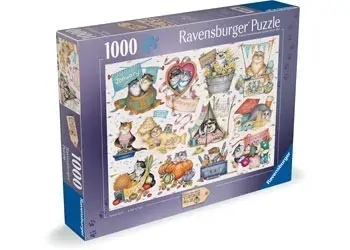 Celebrate a year of feline fun and seasonal charm with Ravensburgers Crazy Cats Cats Calendar puzzle. This delightful 1000-piece jigsaw features playful cats that capture the highlights of each month from January through December. From snowy winter scenes to sunny summer moments, these whimsical kittens bring their unique charm to every season in vibrant, detailed artwork.