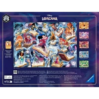 This 1000 piece puzzle is based on the popular Disney Lorcana card game, depicting beloved characters from Forbidding Recluse Beast and Buccaneer Donald Duck to Sonic Warrior Ariel and Future King Simba.