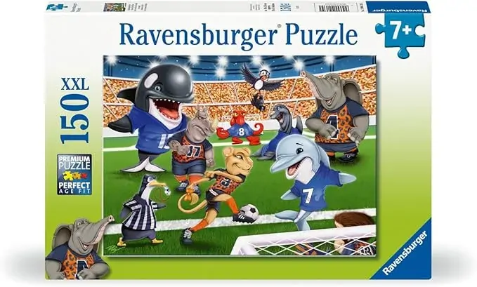 The Ravensburger Soccer Field Flair Puzzle features 150 pieces depicting a lively scene of various animals engaged in a soccer match. Designed for children aged 7 and up, this puzzle enhances spatial reasoning and fine motor skills while captivating young soccer enthusiasts with its playful and detailed imagery. Crafted with Ravensburger's renowned quality, it offers both an entertaining and educational experience.