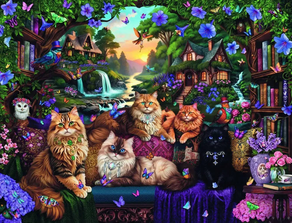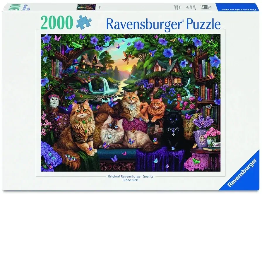 Discover the magic of Cat Tail Cottage with this stunning 2000-piece Ravensburger puzzle. Featuring an enchanting illustration brimming with adorable cats and charming cottage details, this puzzle delivers hours of immersive entertainment for all ages. Ravensburger's signature precision-cut pieces ensure smooth assembly and a rewarding building experience. Whether you're a seasoned puzzler or exploring a new hobby, this captivating design offers the perfect blend of challenge and enjoyment. Display your completed masterpiece as a delightful home accent or gift it to fellow puzzle lovers and feline enthusiasts. A timeless choice for mindful recreation and creative engagement.