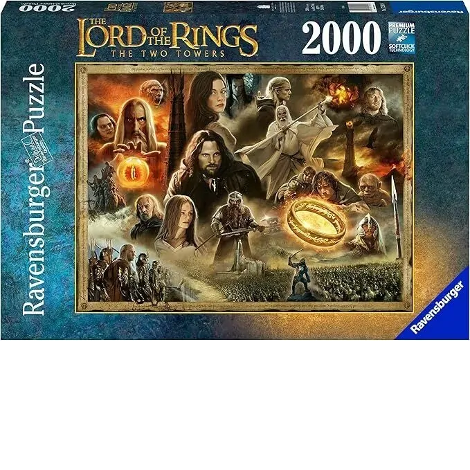 An immersive illustrated map of Middle Earth, Ravensburger's The Two Towers puzzle is a Ravensburger exclusive, perfect for any Lord of the Rings movie fan! Find your favorite characters, including the Elves Arwen and her father Elrond; the Rohan Éomer, his sister Éowyn and King Théoden; Sarumans agent Wormtongue and Boromirs brother Faramir.