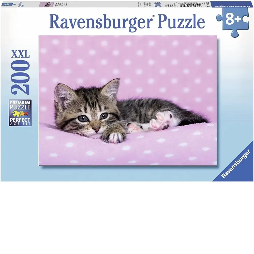 Showcasing a lone fluffy kitten lounging on a soft pink background, this 200-piece jigsaw is sure to delight young puzzlers aged 8 and up. As they carefully reveal each part of this naptime scene, they'll sharpen important skills like shape recognition, hand-eye coordination and spatial awareness. The extra large pieces, constructed from Ravensburger's thick cardboard and fine linen paper, are specially designed for small hands to grasp and manipulate to ensure a frustration-free puzzling experience.