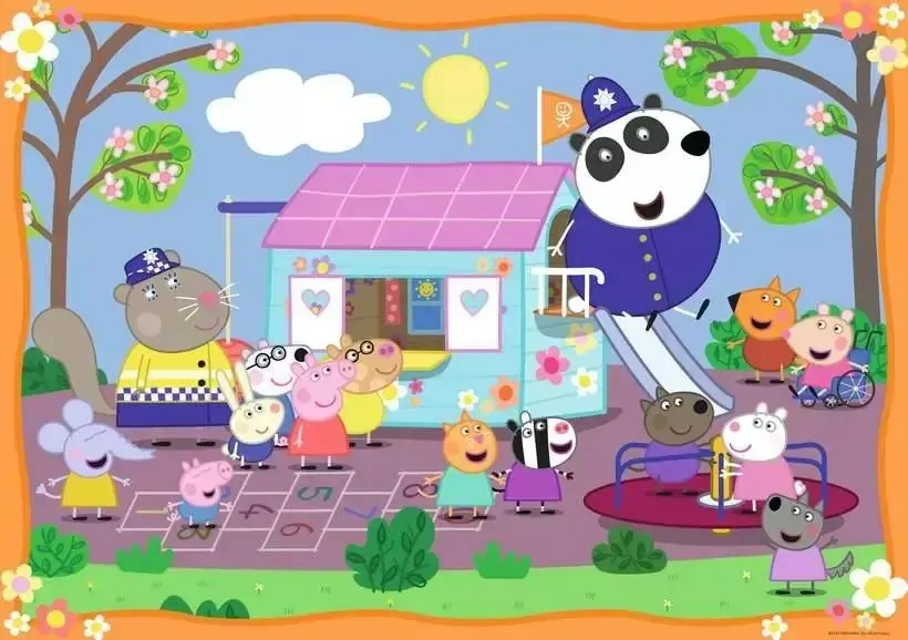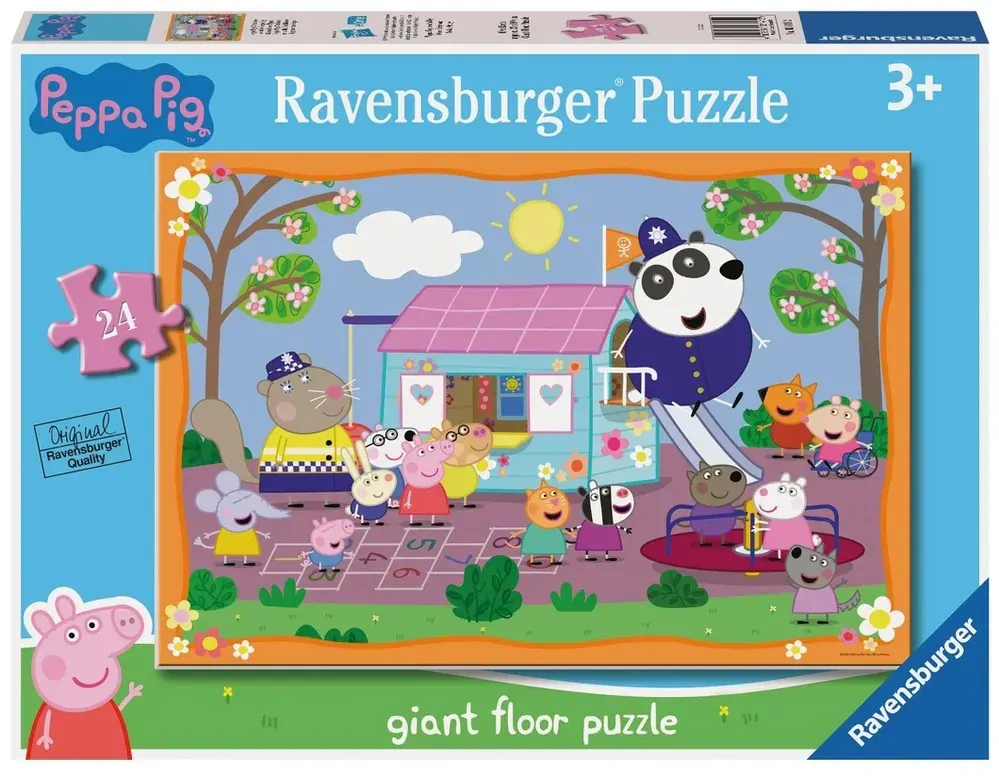 Join Peppa Pig and her friends for a playful day at the clubhouse with the Ravensburger Peppa Pig Clubhouse Giant Floor Puzzle. This lively 24-piece jigsaw features a bright and cheerful scene of Peppa, George, and their friends having fun at the park and clubhouse. Perfect for preschoolers, it combines learning and entertainment in one delightful activity.