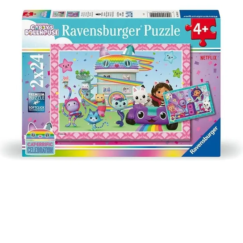 The 2x 24pc Ravensburger puzzle Gabby's Dollhouse offers an exciting puzzle adventure with characters from the popular Gabby's Dollhouse series.