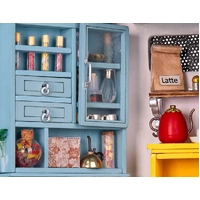 Mimic a warm, Mediterranean-style living room, with so many pieces of furniture to build. You can build everything from a fireplace and a blue cabinet to a cozy sofa and lovely stairs. Every piece is adorable and vivid.