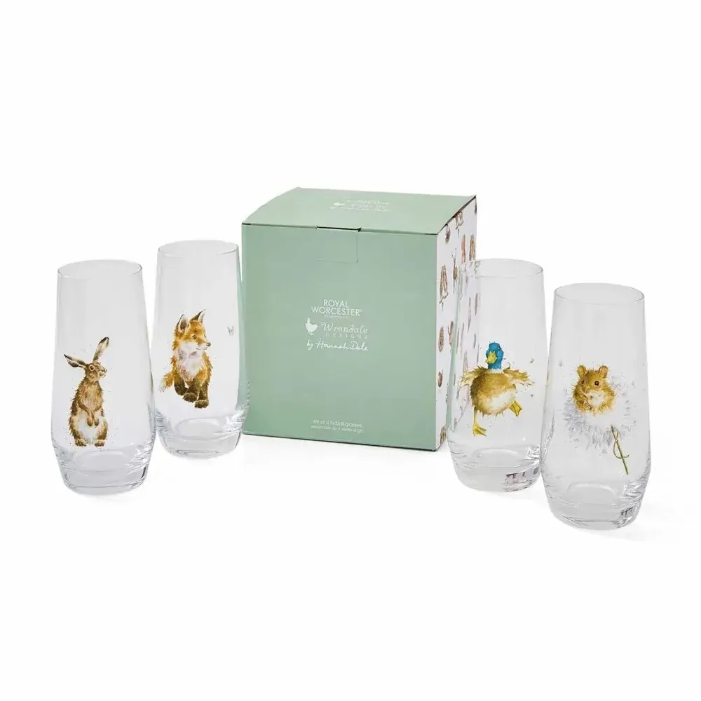 The effervescent style of Royal Worcester Wrendale Designs brings a splash of British countryside to the home. Featuring the award-winning watercolours hand-painted by Hannah Dale, artist and founder of Wrendale Designs, this collection is oh so irresistibly cute. From fine bone china mugs, tea sets and cutlery, to Christmas decorations and kitchen utensils, Wrendale Designs has the perfect gift for animal lovers everywhere. These Wrendale Designs High Ball glasses come as a set of 4 with each glass featuring a different woodland animal.