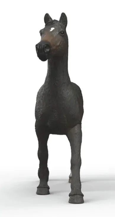 The English Thoroughbred mare is slender and agile, yet muscular and strong. She outruns everyone in the race. Right now, however, she is taking it easy. She strides leisurely across the pasture to keep the handsome English thoroughbred stallion company. Where is it again?