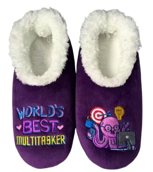 A cozy foot covering for around the house, Slumbies come in a variety of different styles and are a unique way off showing personality.