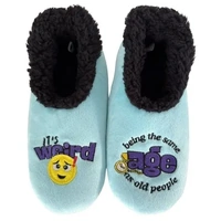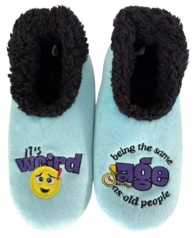 A cozy foot covering for around the house, Slumbies come in a variety of different styles and are a unique way off showing personality.