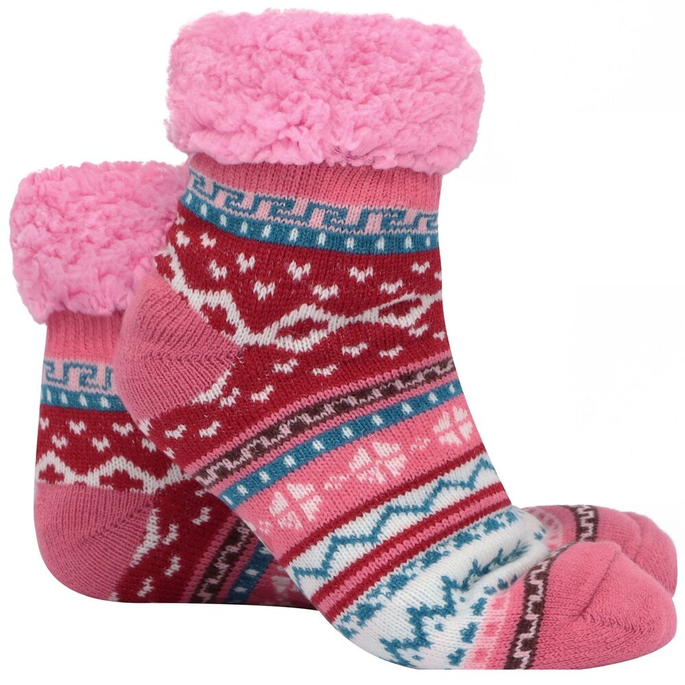 SLUMBIES - NORDIC SHERPA LINED SOCKS PINK