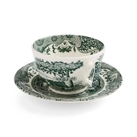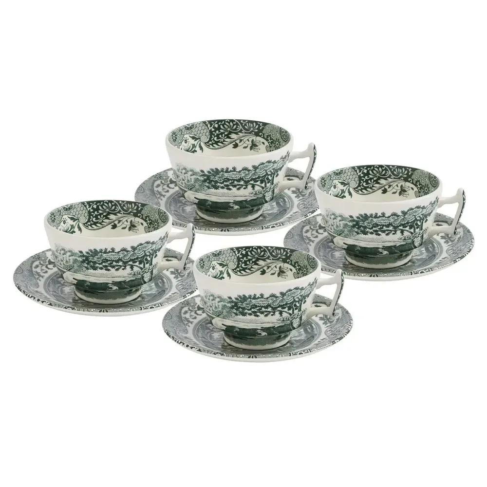 SPODE HERITAGE GREEN ITALIAN - TEACUP & SAUCER (SET OF 4)