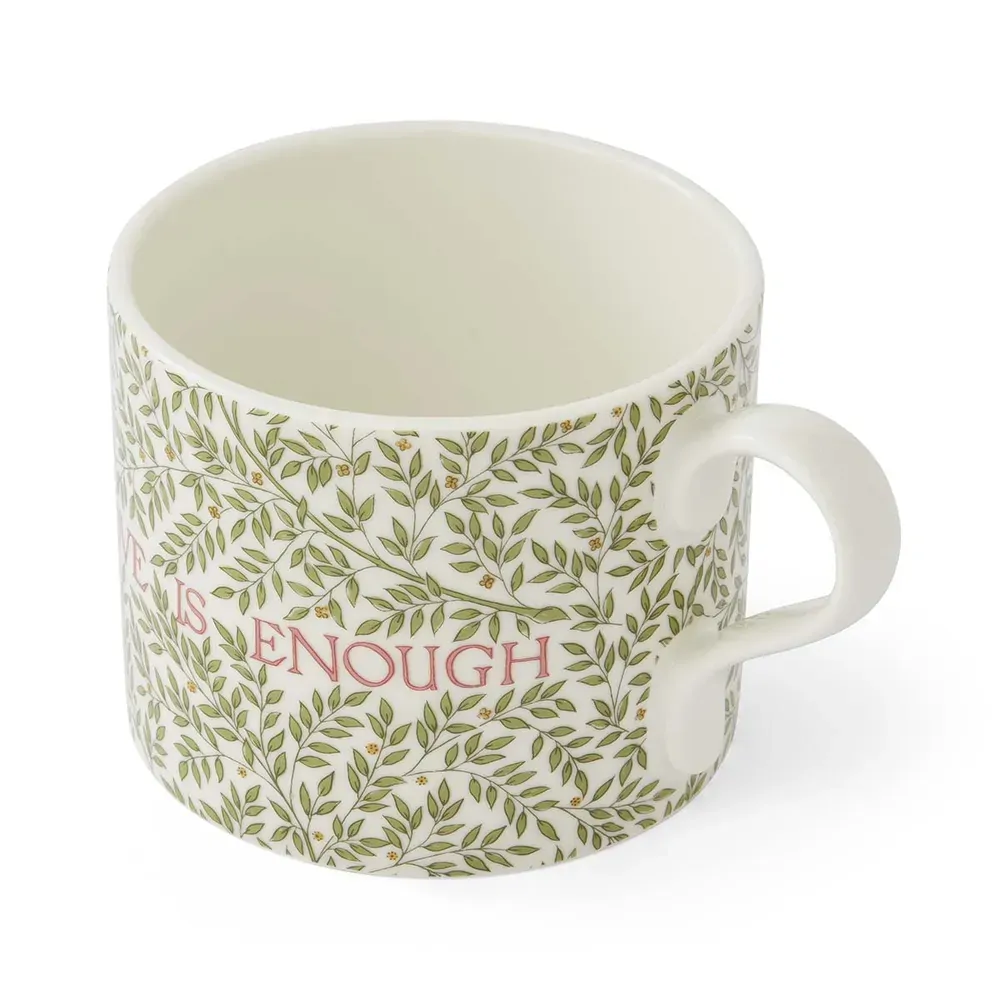 Embrace the poetic beauty of William Morris with this charming set of two mugs from Spode. Each mug is adorned with the heartfelt phrase Love Is Enough, a direct reference to Morriss evocative 19th-century poem of the same name. The sentiment is beautifully presented against a backdrop of intricate, leafy patterns in two distinct yet harmonious colourways. Whether youre a fan of William Morriss poetry, a lover of classic design, or simply appreciate a beautiful mug, this set makes a thoughtful addition to your home.