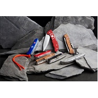 - Swiss made pocket knife with 10 functions and elegant wood scales
